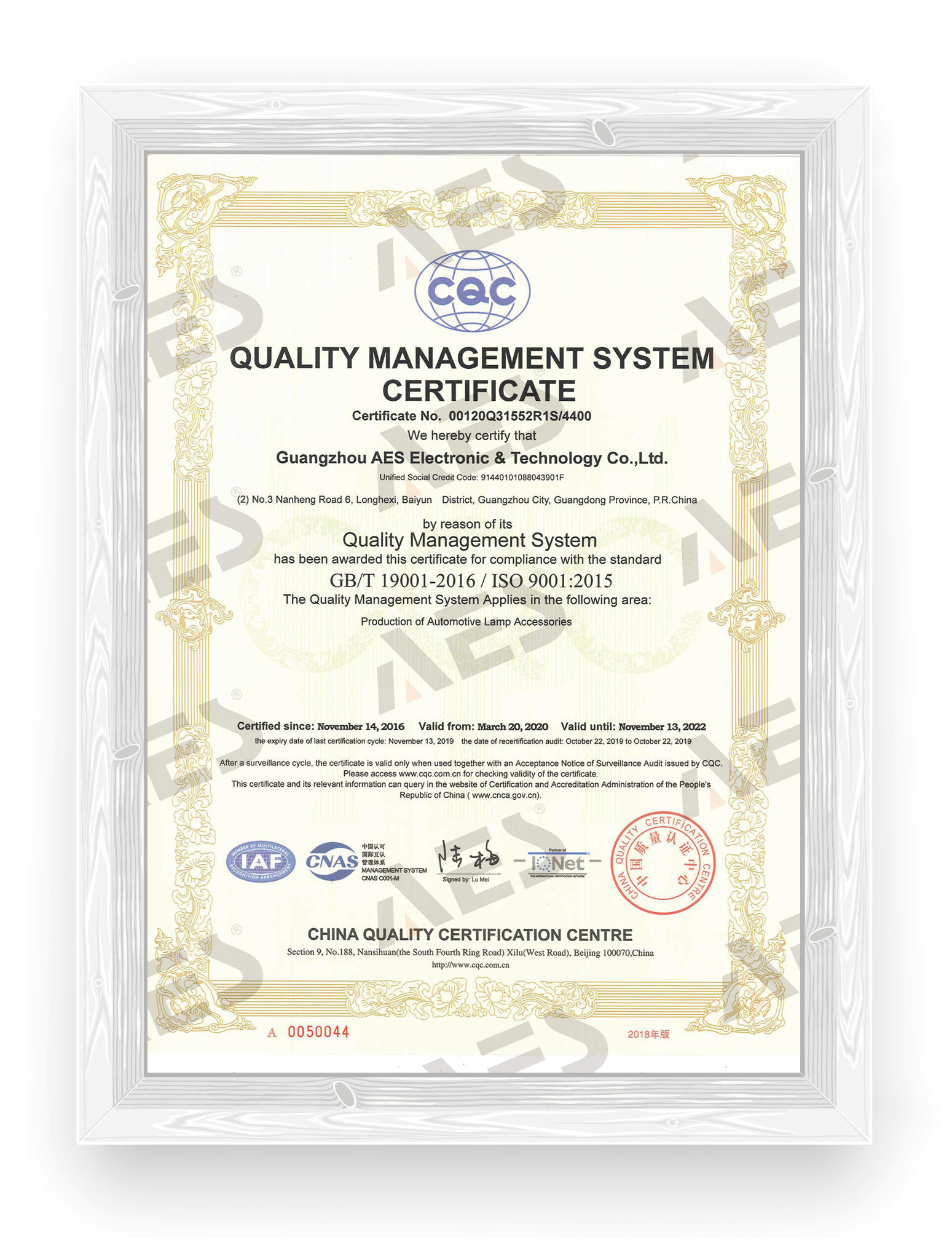 Guangzhou AES Car Parts Co., Ltd. was established in 2003 and is headquartered in Guangzhou, China. Our company is an integrated industrial and trade enterprise specializing in the research and development and production of automotive lighting products, such as automotive bi-led&laser headlight projector lens, fog lens, auxiliary lens, LED headlights and daytime running light, car retrofit parts, etc. There are five major independent brands AES/King Kong/UPS/UPS WAY MAKER/GS.
